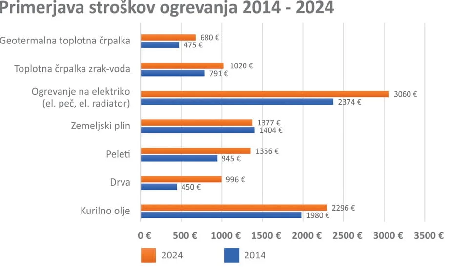 Stroške ogrevanja smo Primerjava se nanaša na obdobje 2014 – 2024 .