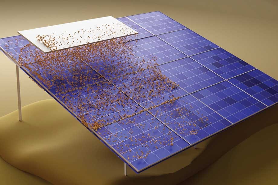 Elektrostatično čiščenje omogoča odstranjevanje prahu s površine solarnih panelov brez mehanskega stika in brez vode.