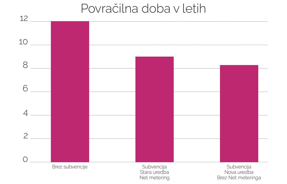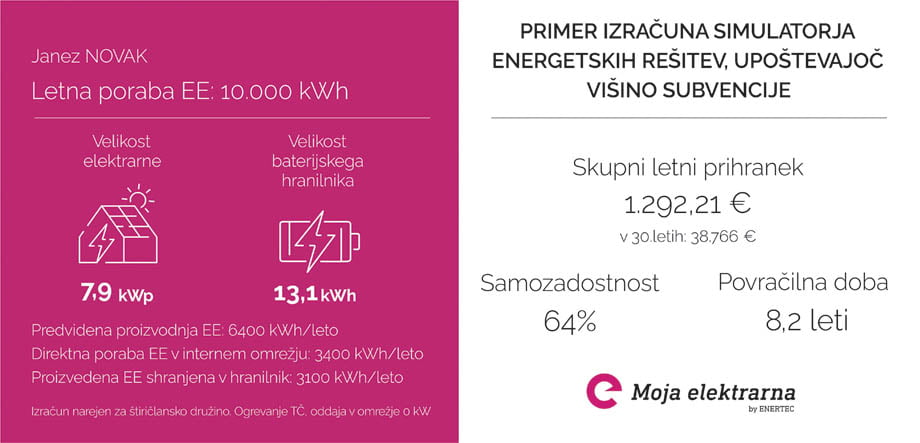 Na podlagi najbolj optimalne rešitve Simulatorja energetskih rešitev, ki ga ponuja podjetje Enertec in temelji na vhodnih parametrih posameznih strank ter lastnem algoritmu, vključno z višino nepovratnih sredstev iz subvencij, je ekonomski vidik izgradnje in doba vračila investicije postala ponovno zelo privlačna. Natančneje, povračilna doba investicije v sončno elektrarno se bo s tem občutno skrajšala, kar pomeni, da stranke hitreje dosežejo finančno rentabilnost.