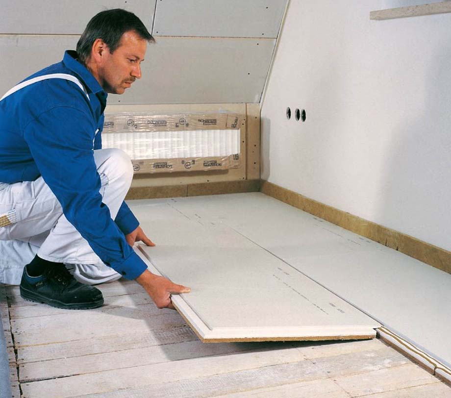 Če bo nasutje nižje, debelo do največ treh centimetrov, izberemo nasutje iz manjših granul. Nasutje poravnamo in položimo suhomontažne plošče – namenske mavčno-vlaknene plošče Fermacell, Rigips ali pohodne OSB plošče na pero in utor.
