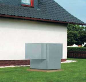 Toplotne črpalke zrak/voda odvzemajo toploto iz okoljskega zraka in z njo ogrevajo vodo ogrevalnega sistema. Toplotne črpalke, ki so predvidene za postavitev na prostem, imajo v primerjavi z drugimi sistemi toplotnih črpalk posebno prednost: zunanjega zraka kot vira toplote ni potrebno najprej zajeti. Obsežna zemeljska dela, kot so potrebna pri polaganju zemeljskega kolektorja, ali drago vrtanje za zemeljske sonde, niso potrebna. Pri postavitvi na prostem kanali za dovajanje in odvajanje zraka niso potrebni, v hišo se mora speljati le ogrevalni vtok in povratek ter električni priključek. Za postavitveno površino je potrebna le utrjena podlaga (slika1).