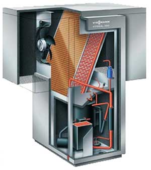 Slika 2: Toplotna črpalka zrak/voda (Vitocal 350-A) za postavitev na prostem z vbrizgavanjem pare za temperature vtoka do 65 °C.